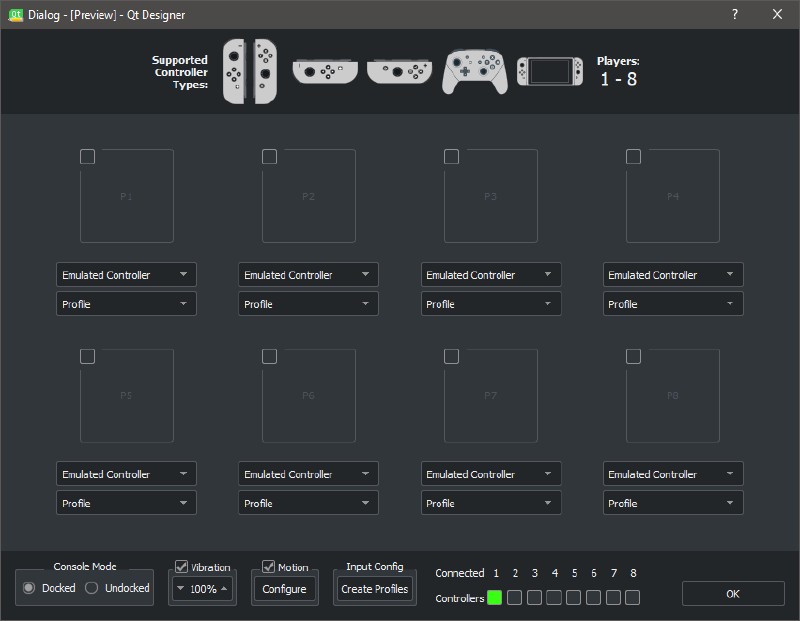 Below are comparisons between the Nintendo Switch’s and yuzu’s Controller Applets: